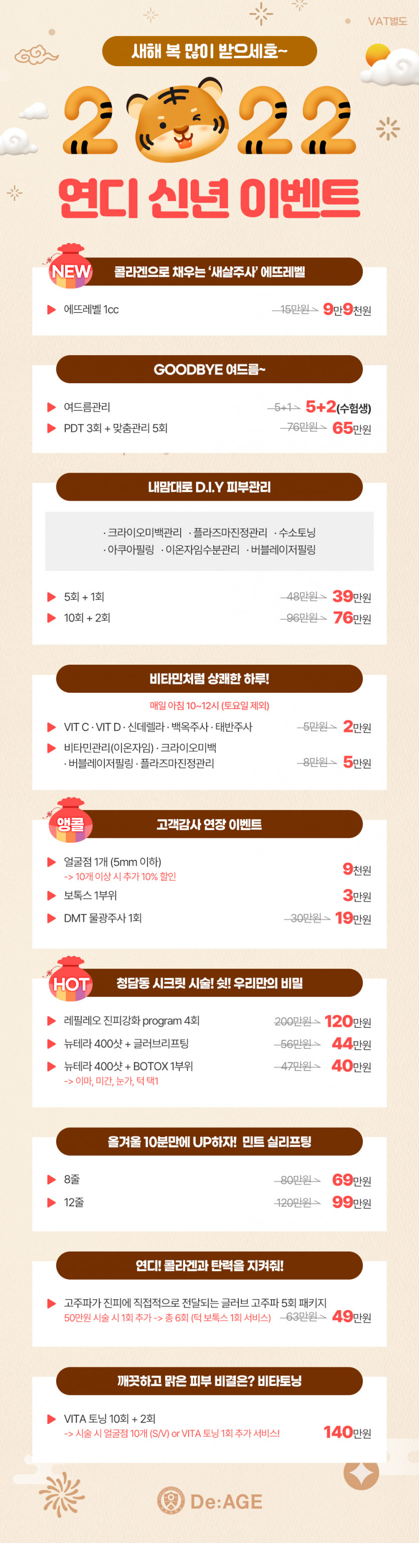 EVENT 연세디에이지 2022년 신년 이벤트 페이지 정보 작성자 연세디에이지 댓글 0건 조회 11,668회 작성일 21-12-31 09:45 목록 답변 본문 연세디에이지 2022년 신년 이벤트 소식 안녕하세요 연세디에이지 입니다:)2022년 임인년의 해가 밝았습니다.새해 밝은 하루 보내셨나요?연세디에이지에서는 호랑이 기운을 받은 신년 이벤트를 준비했습니다! 연세디에이지 가족 여러분 새해 복 많이 받으시고올 한 해 소망하시는 일 모두 이루시길 기원하겠습니다♥♥ ▷상담문의: 031-318-1013▷카카오톡: @연세디에이지의원 이전글연세디에이지 2022년 1월 진료일정 안내 21.12.31 다음글연세디에이지 12월 이벤트 소식 21.12.09